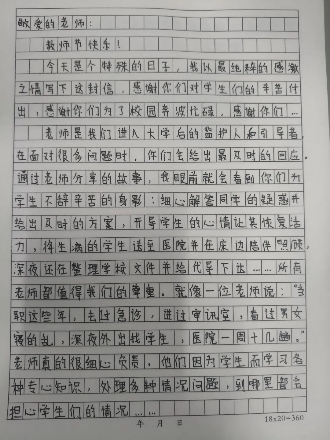 数学与应用数学 2543 班的张越同学,在充满感恩的教师节,提笔写下这封信。信里深情回顾了老师在讲台上的风采、耐心解答问题的场景以及对自己的鼓励指引,表达了对老师知识传授、品德影响的感激,同时也为老师送上了真挚的祝福。
