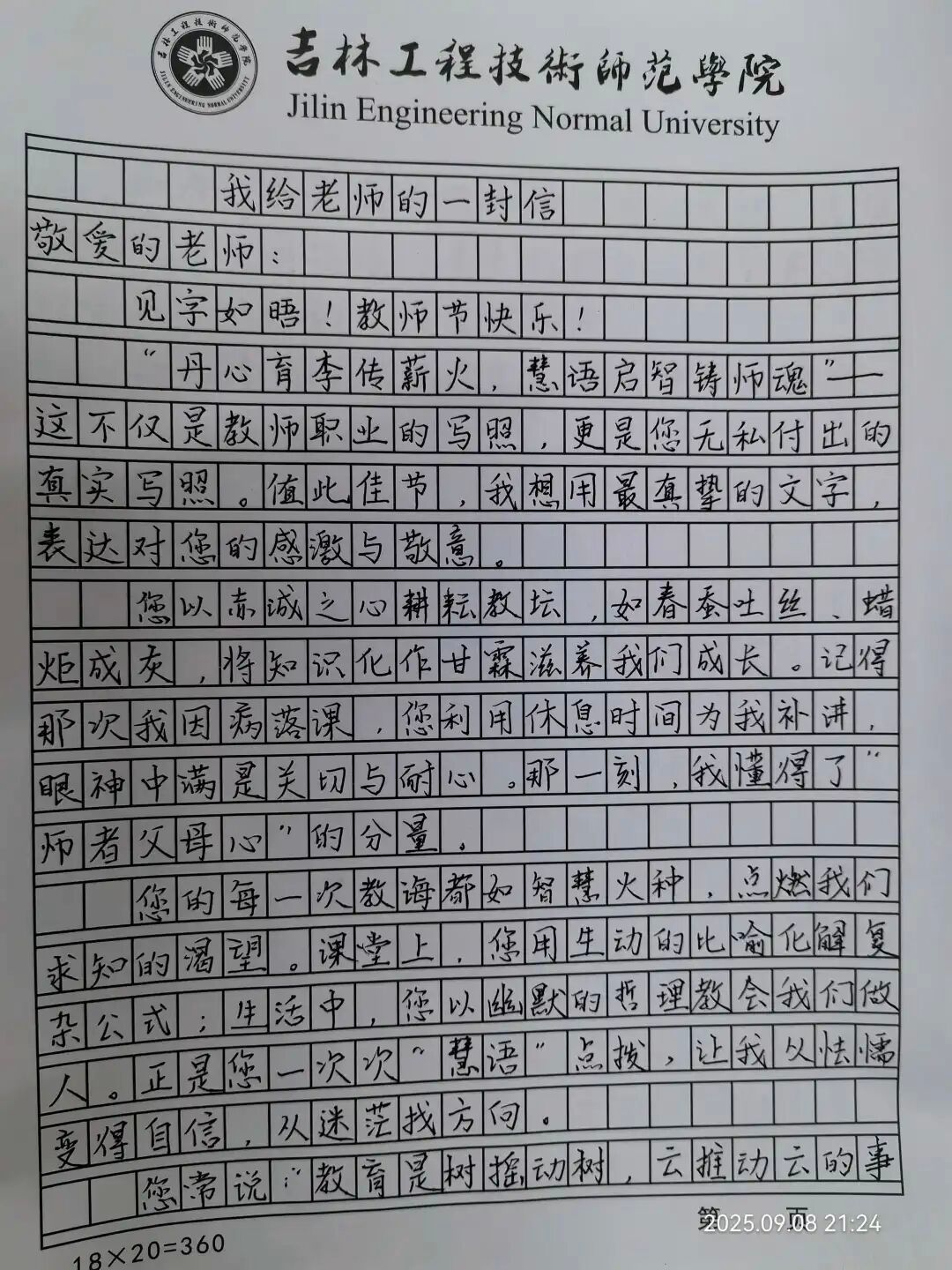 九月的风掠过教学楼,粉笔灰落在课本的褶皱里,走廊上还能听见熟悉的叮嘱,这些藏在校园里的日常,总在某个瞬间突然清晰:原来那些被我们悄悄记在心里的温暖,都与 “您” 有关。今天,我们把没说出口的感谢,写成了一封封信。