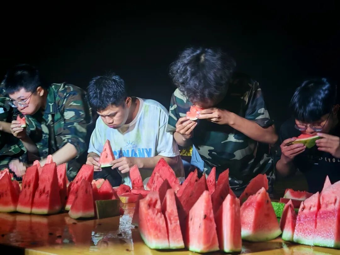 军训甜度超标 | 西瓜大赛治愈疲惫 来源:学团动态 2025/09/17 9月11日,学院心理健康中心联合文体部,为2025级军训新生准备了“清凉+浪漫”双重惊喜——首先在操场上展开吃西瓜大赛,选手们甩开包袱大口“吃瓜”,场边加油声浪此起彼伏。在校园草地开展“音随心灵舞”草地音乐节。吃西瓜大赛与草地音乐节共同举办,让同学们在欢乐中释放压力、愉悦心灵。此次活动为同学们搭建了放松身心、展现自我的平台,既在吃西瓜大赛里收获了欢乐与活力,又于草地音乐节中沉醉于音乐魅力,助力大家以更健康的心理状态和饱满的热情投入到学习生活中。