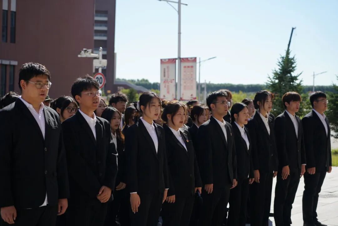 2025级新生代表网络安全2542班尚俊哲在发言中讲到:我们要铭记历史、勿忘国耻,新时代新青年肩负着实现中华民族伟大复兴的历史使命,我们要树立坚定的理想信念,将个人的成长与国家的命运紧密相连,把为中华民族伟大复兴而奋斗作为自己的人生目标。