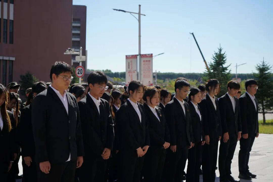 学生骨干代表学生会秘书处工作人员刘家铭讲到:历史的接力棒已传递到我们手中。让我们铭记“九·一八”的警钟,把爱国之情、强国之志、报国之行融入到学习和生活的每一个细节中。让我们以青春之我,创建青春之国家,青春之民族,让中华民族在世界舞台上绽放更加耀眼的光芒!
