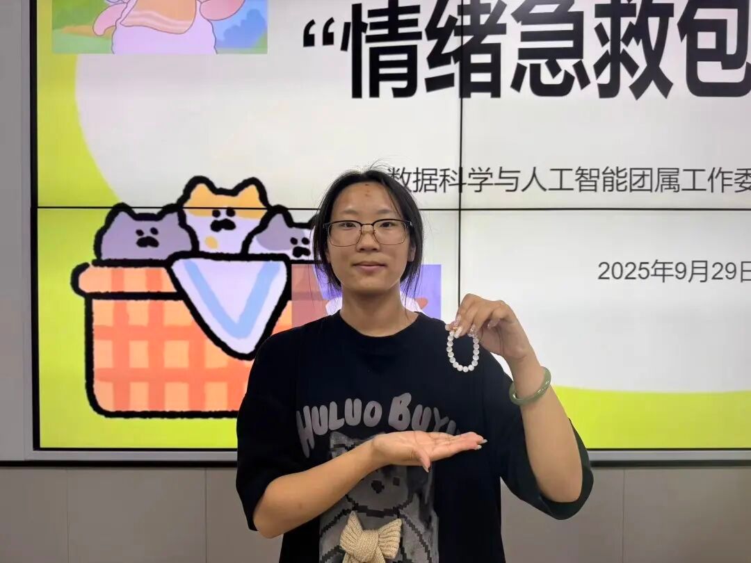 刘雨鑫以“手作疗愈情绪,创意点亮青春”为主题展开引导。结合新生初入大学的情绪状态,从粘土塑形的情绪表达到手串搭配的风格传递多个维度,用亲切生动的语言和充满创意的引导,向同学们阐述了手作活动在舒缓压力、激发创意方面的意义。