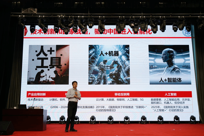 本次报告会围绕人工智能产教融合及课程教学创新展开,黄国鹏教授从产业、教育、应用和职业四大板块深入探讨了AI对人才培养和校企合作的影响。他强调AI技术对个人职业发展和企业竞争力的重要性,并提出了教育改革的方向,包括构建校企融合生态和以技术赋能教学。黄教授还针对高校毕业生的职业发展路径提出了具体建议,重点关注了AI实践经历和AI伦理问题。